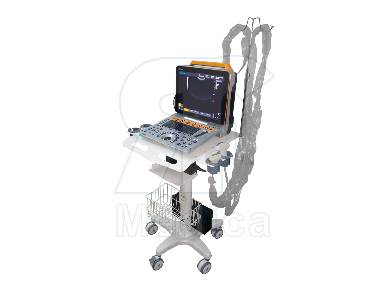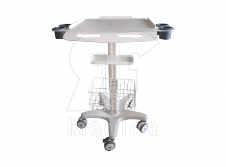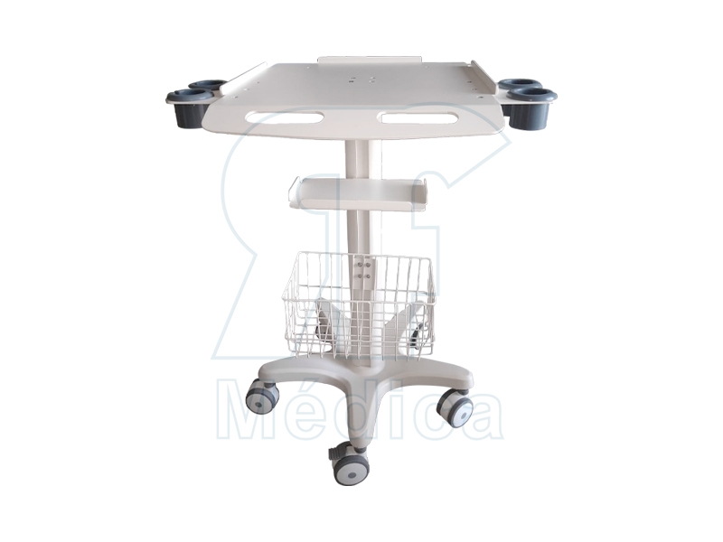 Características: • Porta cables • Soportes laterale de 4 bocas para transductor. • Estante intermedio metálico. • Canasto • 3 ruedas con frenos. • 2 ruedas con giro 360°